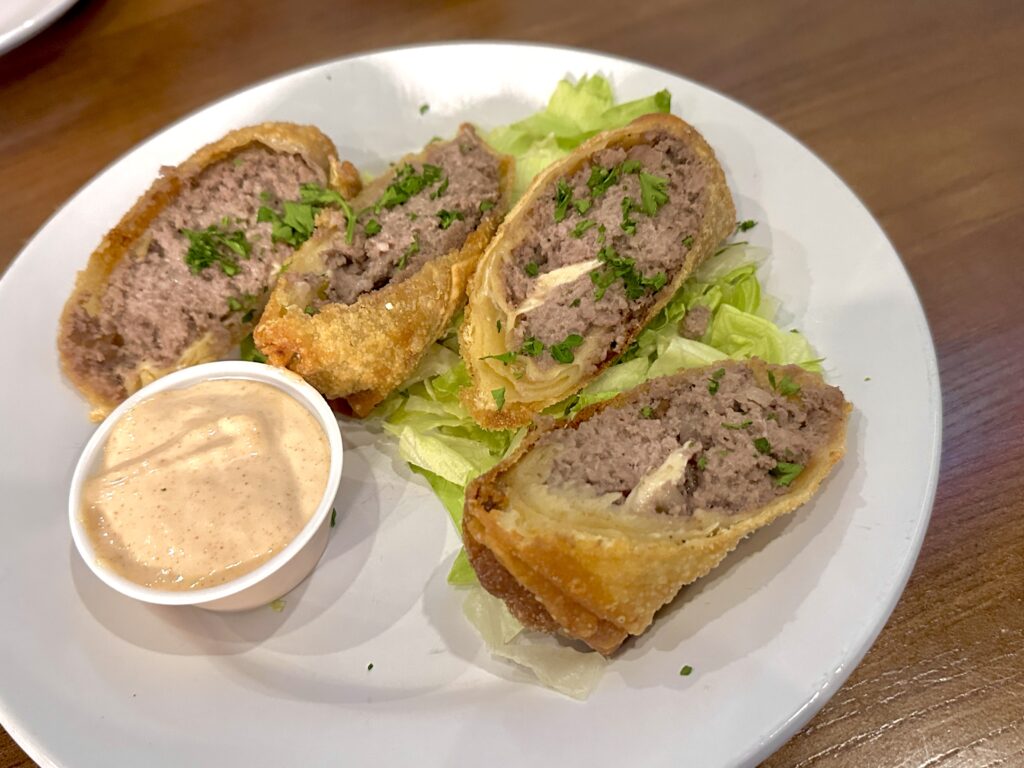 The nachos tray is my favorite app. I say tray because they’re served in a large pizza pan. And you don’t want to miss their Wings & Drums with flavors such as Buffalo, Nashville hot, and Garlic Parmesan.